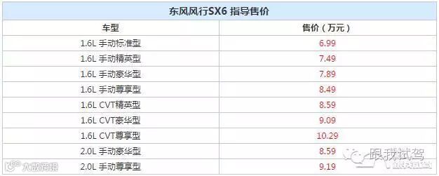 风行SX6一共推出了9款车型,两款动力选择,并且在其主推车型当中还有3款自动挡车型,对于那些需求自动挡车型的家庭用户来讲,只需8.59万便能买到;而如果您是位驾驶高手,不在乎手动换挡而更在乎动力,那么用同样的价格能够得到2.0L车型。除此之外,SX6最便宜的车型仅卖6.99万元,同样标配了双气囊、TCS与ESP系统,真是良心价啊。