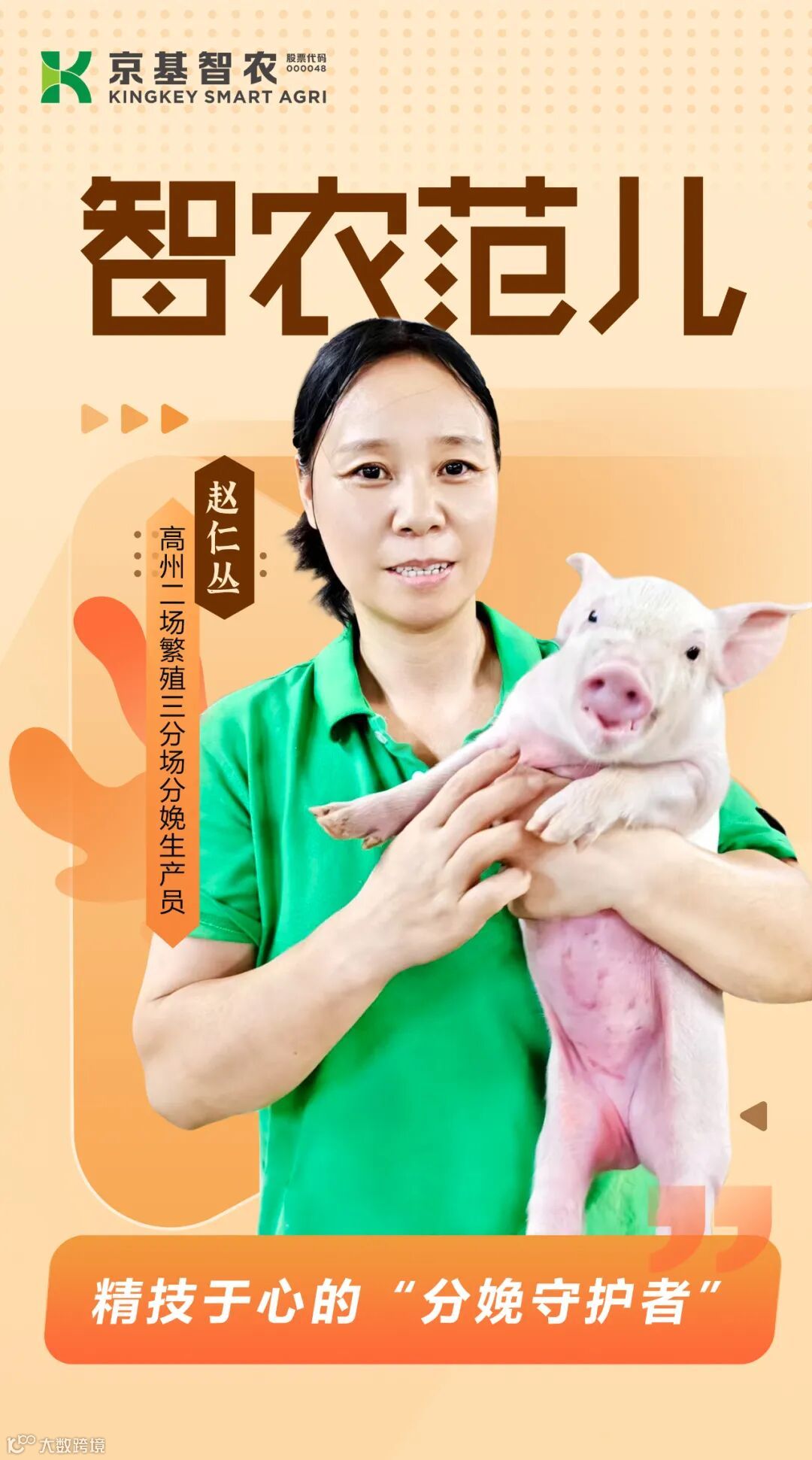 自踏入猪场的那天起,她便把对养猪事业的热情倾注于每一个日夜。在不断钻研与学习中练就了过硬的分娩技术,更用一颗细腻的心,守护着每一窝仔猪的平安降生,用专业与温柔,为新生命的到来保驾护航。