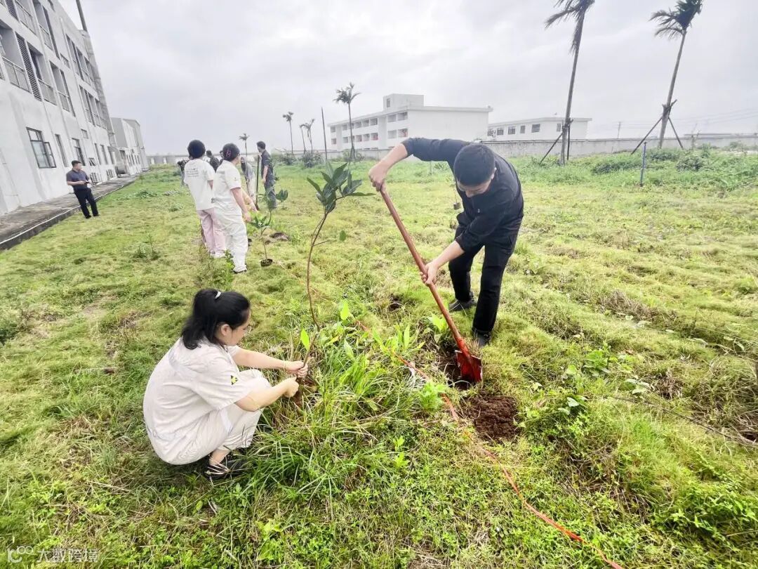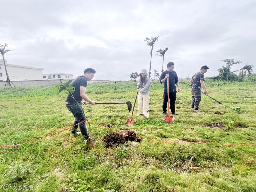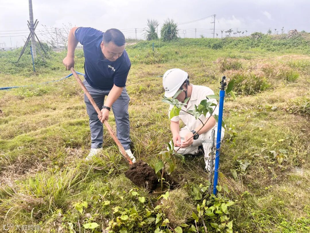 文昌项目在养殖场内种植了2000棵木麻黄,未来将形成防风林带,筑起一片绿色天地。同时,员工们精心挑选了30棵莲雾树种植于宿舍周边,为生活增添绿意,提升社区友好度。