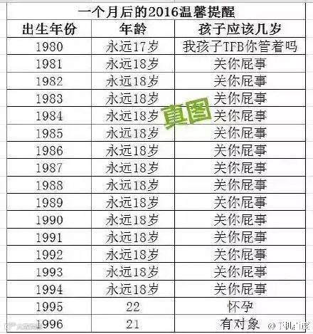 还有二十多天就要迎来2016年了,朋友圈里被一张图为“2016年的温馨提示”刷屏,明明都很忧桑了,为什么还要神补刀一个虚岁嘛。