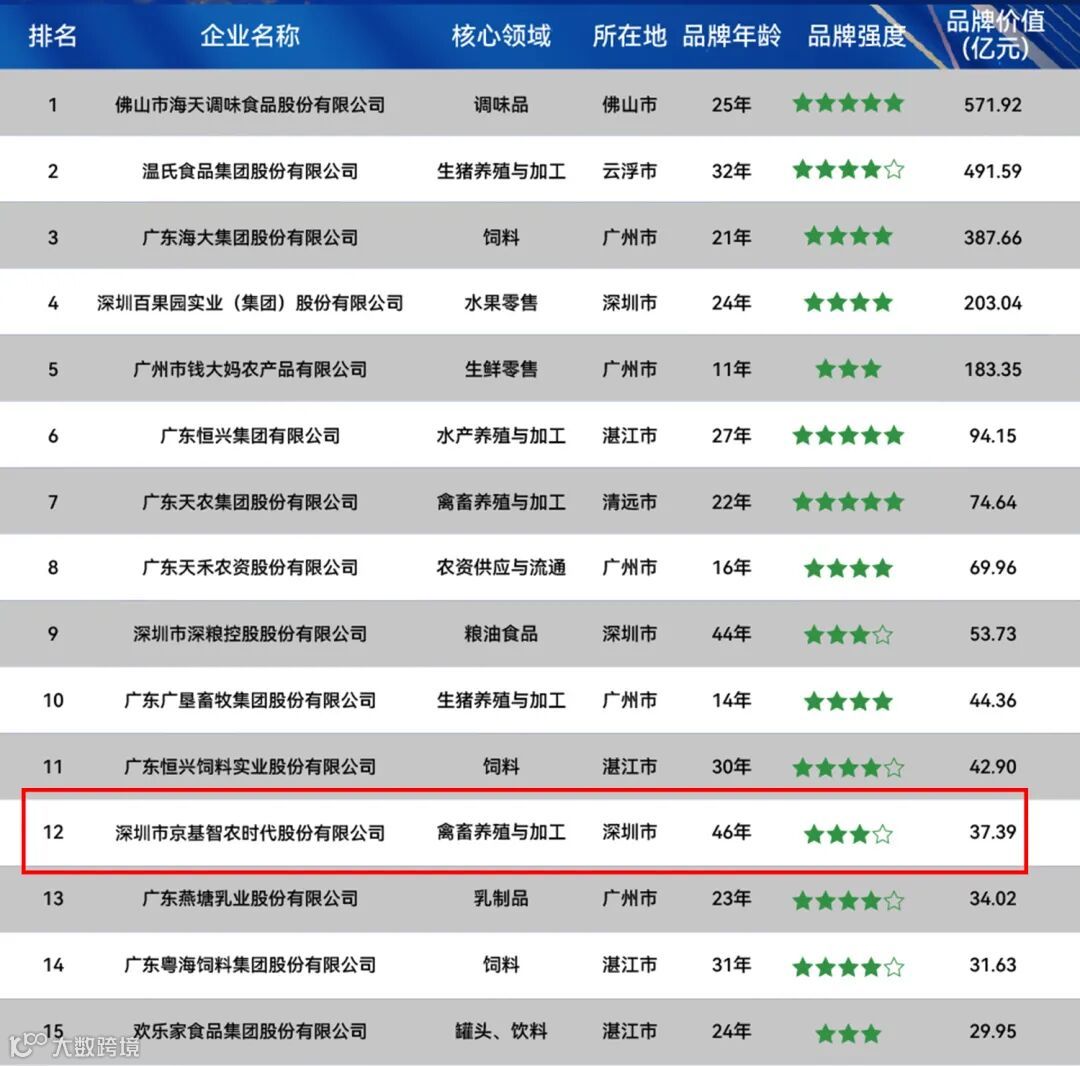 在品牌建设层面,京基智农同样获权威价值认证。12月12日公布的“2025年广东农业企业品牌价值50强”显示,公司位列该榜TOP12,品牌价值评估达37.39亿元。