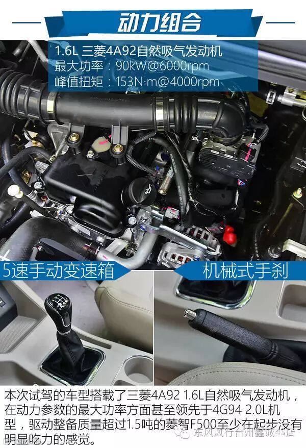 动力和驾驶感受:搭载三菱4A92发动机,动力满足需求