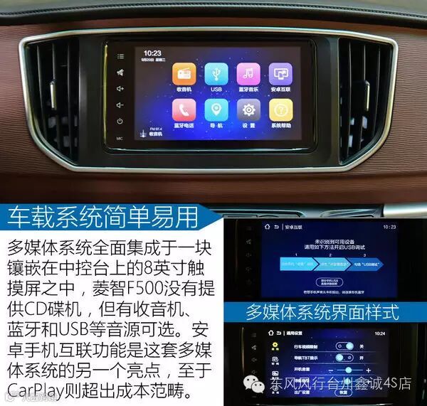 全新的内饰设计是菱智F500的另一个亮点,横贯式内饰布局加上镶嵌在正中的大尺寸显示屏令人不由得想起某款以商务属性著称的合资品牌MPV车型,当然借鉴出色设计对于设计和研发实力不甚雄厚的自主品牌来说无可厚非,不过在材质选用上,感觉红棕色带有纹路的塑料面板质感一般,还不如采用亮面烤漆材质来得上档次。在配置方面,菱智F500遵循了实用、好用的原则,手动空调配合风量强劲的后排出风口也能在一定程度上满足乘客的舒适性需求。空间则是此种类型车型的先天优势,菱智F500在此也有突出的表现,而五个天窗则更是领先同级别车型的优势配置,提供特别通透的车内空间体验。