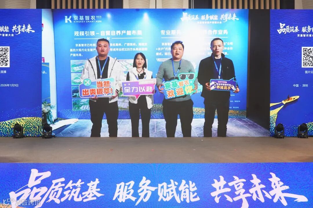 1月9日,京基智农“品质筑基·服务赋能·共享未来”客户答谢大会在深圳宝安京基华邑酒店圆满举行。本次大会聚焦生猪养殖行业规模化、标准化、智能化发展的新阶段,探讨如何通过多方深度协同应对市场波动、提升整体效能,展现了京基智农与合作伙伴共同成长、价值共享的决心与实践。