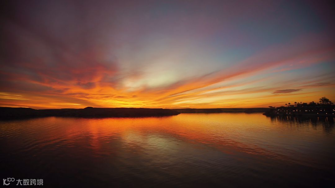 纳赛尔湖上的晚霞美景映入眼帘