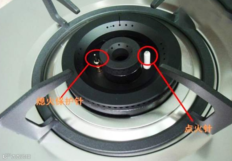 如何判断灶具是否带有熄火保护装置呢?其实很简单,带有熄火保护装置的灶具在灶头位置有两个针头,一个是打火装置,另一个就是熄火保护装置,而不带有熄火保护装置的灶具在灶头位置只有打火的针头。