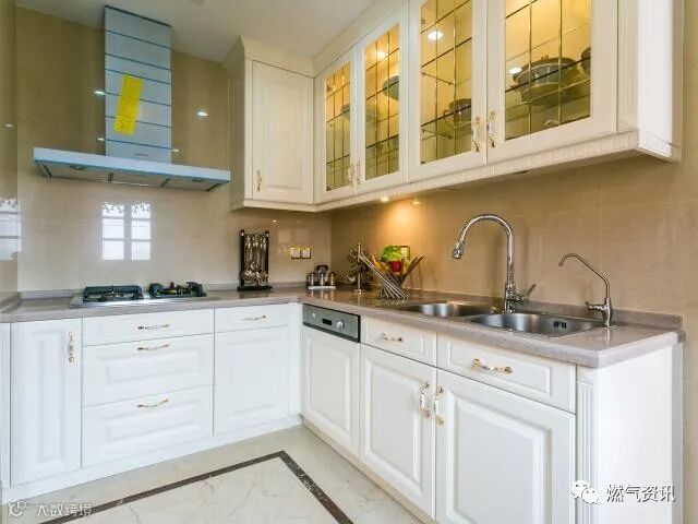 那么如何操作呢?可以在橱柜后面不加背板或者打眼穿过去,记住不能包住管道,这样方便检查,管道有什么损坏可以马上发现,所以进户燃气管道是能够包在橱柜中的。