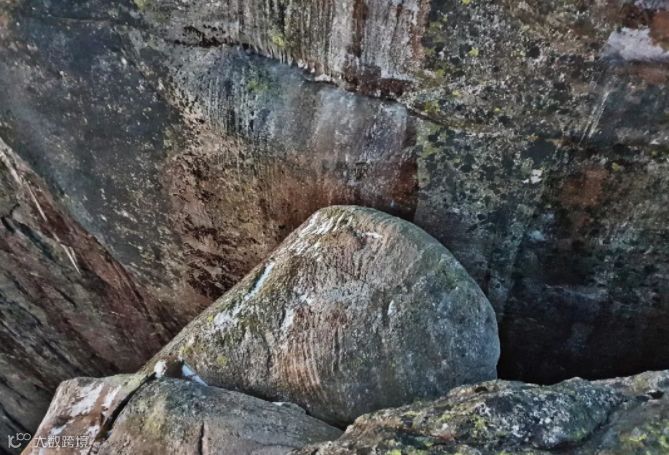 体积约5立方米,刚好卡在悬崖绝壁间