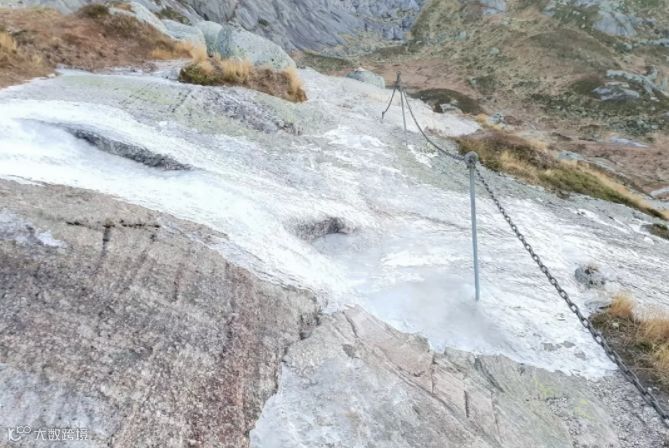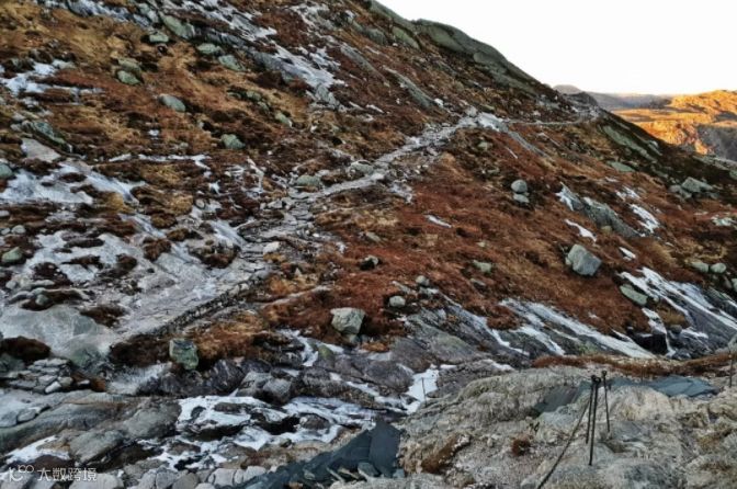 而结冰的山路增加了攀爬的难度与危险系数