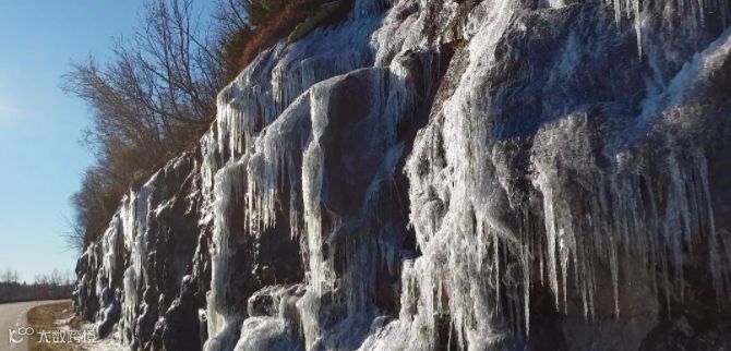 即使有阳光,水滴成冰的景象也依然随处可见