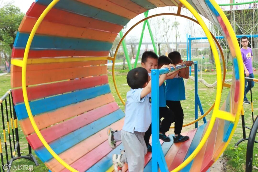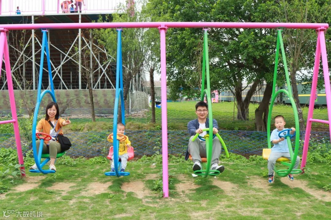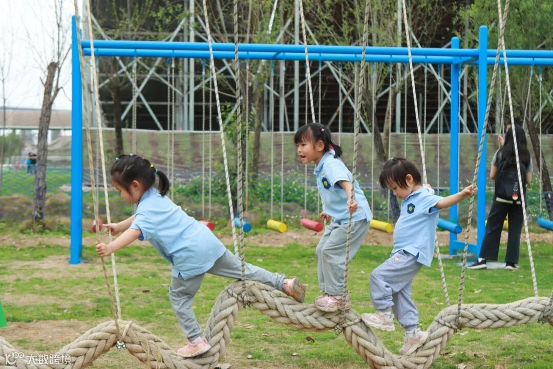 由一个个吊环组成的秋千,考验着孩子们的臂力与身体协调性。