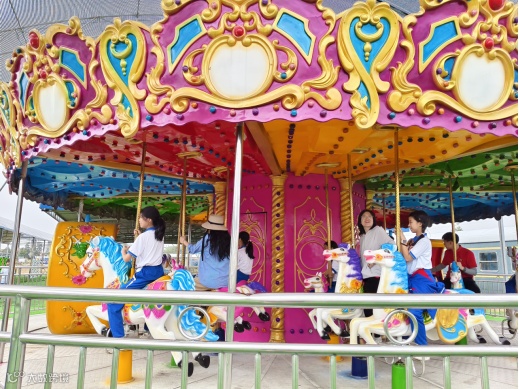 经典的旋转木马,华丽的装饰与悠扬的音乐相伴。孩子们骑上自己喜爱的木马,随着木马的旋转,仿佛进入了一个童话世界,感受着浪漫与梦幻的气息。