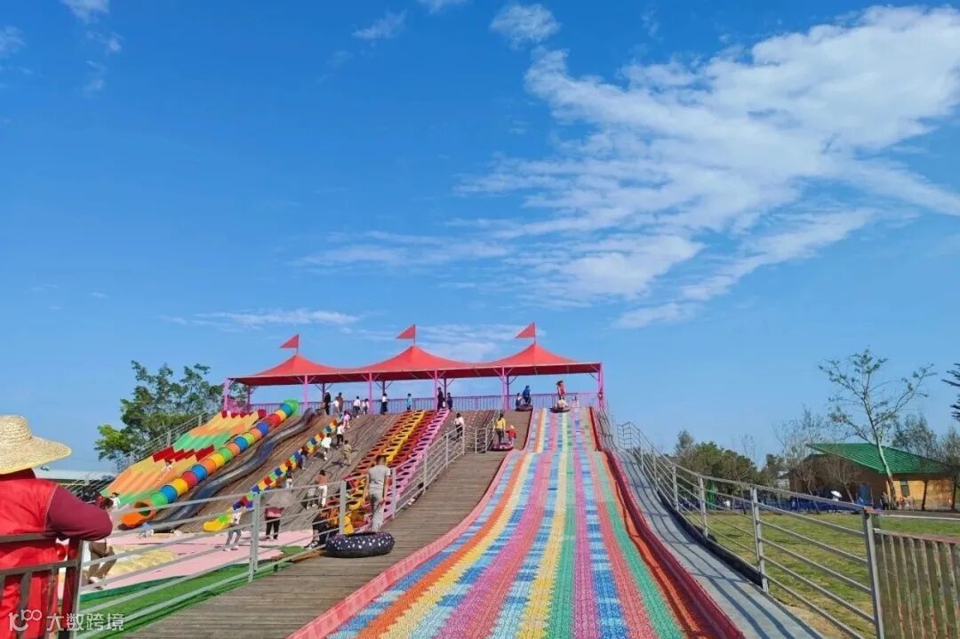 彩虹滑道:园区内的彩虹滑道无疑是最吸睛的项目之一。孩子们坐在特制的滑垫上,顺着滑道飞速滑落,高低起伏的轨道带来如同冲浪般的速度与快感,尽情畅享风驰电掣的刺激体验。