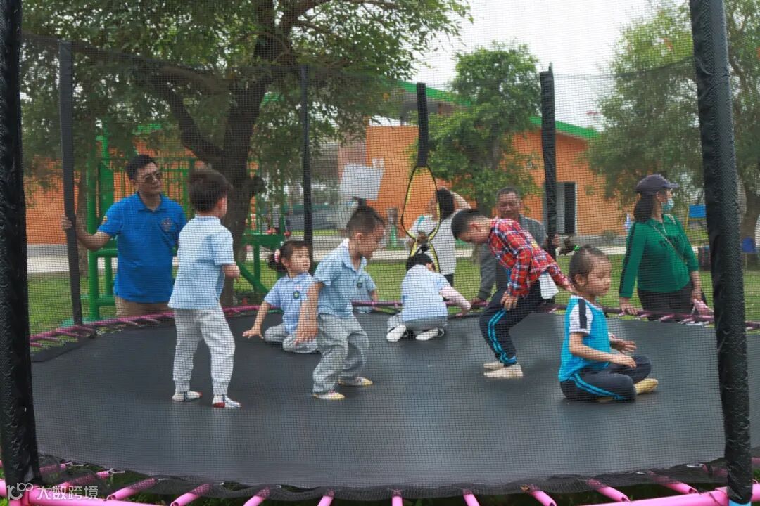 弹性十足的蹦床区域,孩子们可以在这里尽情跳跃,感受腾空的快乐。