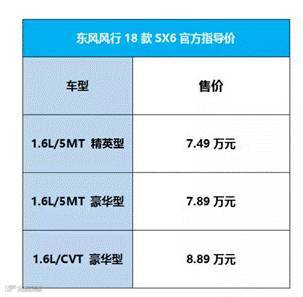 2018款风行SX6现已上市