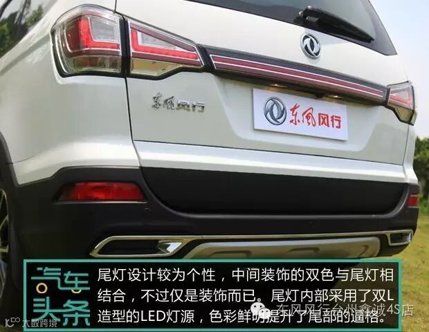 来到车身侧面,健硕而浑厚的腰线从前翼子板贯穿至尾灯处,彰显了风行SX6的肌肉感和力量感。与此同时,窗框四周边沿增加了镀铬装饰条,看上去更加美观。其门槛下方也增加了镀铬装饰条,四周下围都采用了塑料材质护板等新设计,又增加了整车的运动活力。尾部方面,风行SX6与前脸一样保持了简约风格,并没有过多的线条作为点缀,不过尾灯设计的较为个性,中间装饰的双色与尾灯相结合,不过仅是装饰而已。尾灯内部采用了双L造型的LED灯源,色彩鲜明提升了尾部的逼格。排气采用双边共两出布局,排气口与保险杠采用镀铬装饰融为一体,搭配大面积银色护板,使尾部造型更加浑然天成。