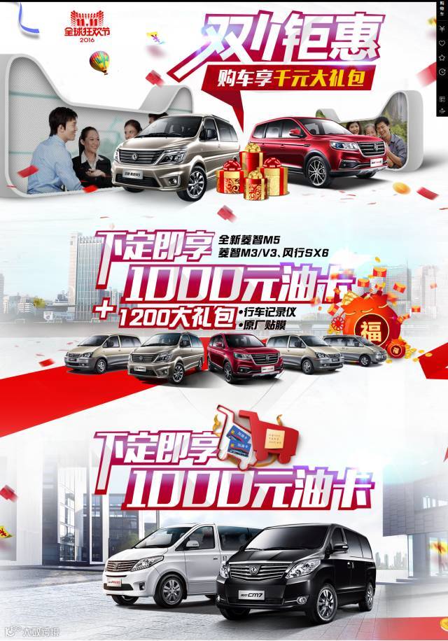 2. 订购全新菱智M5、现款菱智系列、风行SX6等爆款车型,除获得1000油卡油卡外,还可获得1200大礼包(行车记录仪+原厂全车膜)!