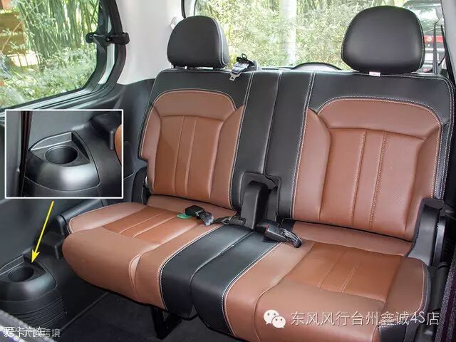第三排座椅虽然是按5:5的比例设计,但从配备了中间乘客的安全带可以看出,第三排可乘坐三人。此外F600还为第三排的乘客设计了杯架,在F500上就没有此设计了。