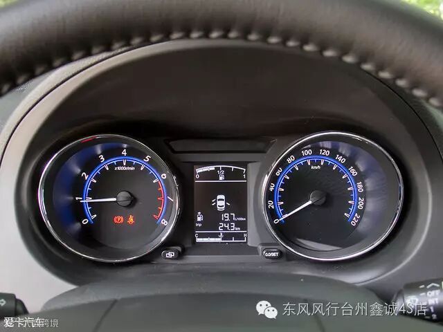 双炮筒仪表盘采用蓝底白字的搭配,读取数据并不困难。中间是一块单色的行车电脑显示屏,可显示车门开闭状态、平均油耗、水温、油量以及里程数。