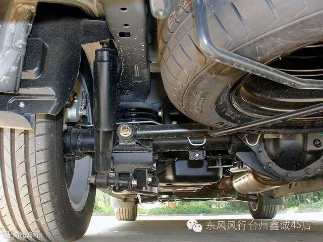 F500采用的是前双横臂扭杆弹簧独立悬挂与后钢板弹簧非独立悬挂的组合。