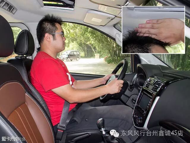 身高185cm的体验者坐到F600的前排,在无法调节座椅高度的情况下,头部有四指的空间。
