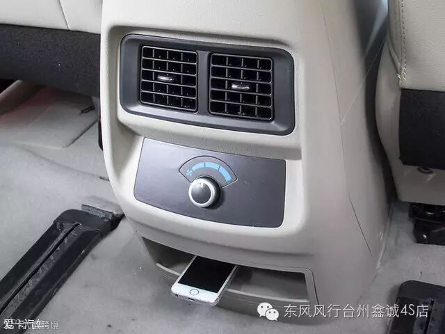 F500后排也配备了空调出风口,但没有F600的那么多,只是在第二排地板中央有两个出风口,并带有独立的风量调节旋钮。