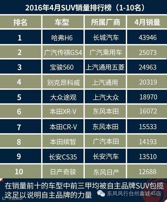 火,火,火!要说现在什么车最火,那毫无疑问是SUV,而在SUV中最火的则必须是自主品牌SUV!什么?你不信,好,那咱们来看看2016年4月份的汽车销量排行版!