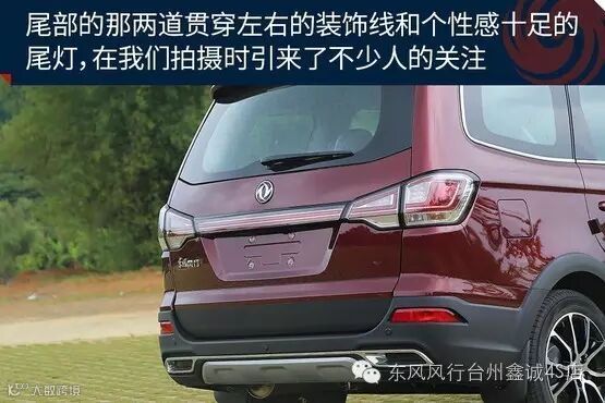 从细节来看,风行SX6的外观细节有着不错的处理方式,特别是尾部的那两道贯穿左右的装饰线和个性感十足的尾灯,在我们拍摄时引来了不少人的关注。他们都表示很喜欢这个设计,说这样的设计让原本看上去较为彪悍的车型有了一定的时尚感。
