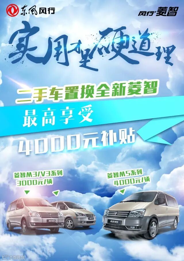 二手车置换金额补贴:菱智M5系列 4000元/辆;菱智M3/V3系列3000元/辆;