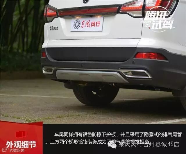 车尾设计比起传统的都市SUV还是有点特别的,为了兼顾第三排的空间和后备箱的实用性,尾部造型比较方正,切削感明显。但是风行也并没有放任不管,而是用一根与尾灯同色的贯穿式反光条把两侧尾灯统一联系在一起。这样整个尾部的设计感加强了,层次更鲜明,也不会显得很“楞”。