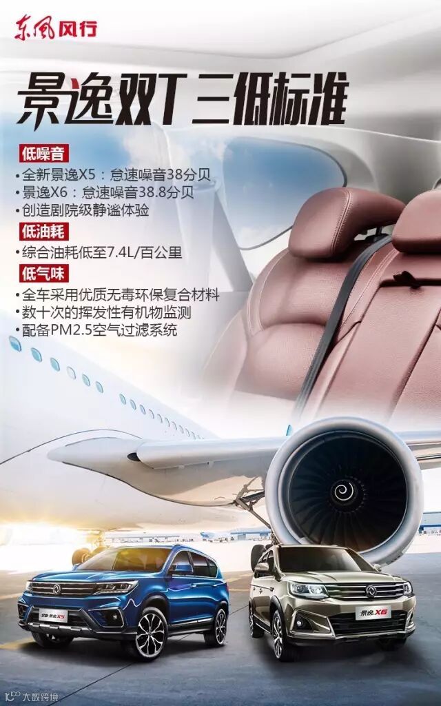 低气味:全新景逸X5、景逸X6全车使用高于国家标准的环保内饰材料,自提车一刻你就拥有最健康的驾乘环境!同时全新景逸X5所搭载的PM2.5空气过滤系统,可有效过滤PM2.5颗粒和有害气体,让车内的空气始终净爽!
