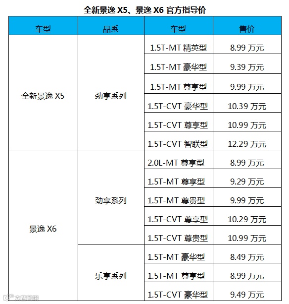 全新景逸X6、景逸X5