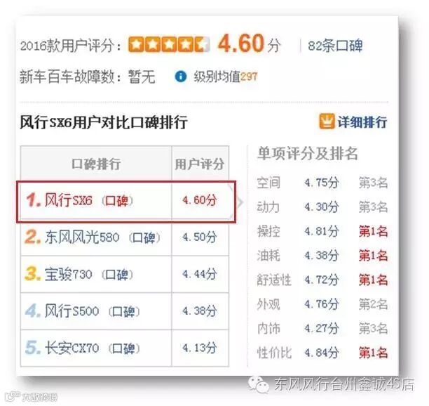 除此之外,风行SX6还在JDpower2016自主品牌销售满意度排名获得第一名~