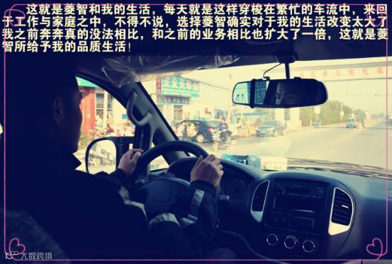 说起菱智,可能大家第一印象就是空间大,舒服,方便......因为工作的原因我选择了菱智,菱智超大的空间,正好是我的工作所需。从单位离职之后,我选择了快递以及物流这个工作,从此注定了要辛苦和劳累,也注定了要与菱智结伴同行。作为80后,正是一个需要打拼的年纪,感谢菱智的陪伴,让我在实现梦想的路上风雨无阻。
