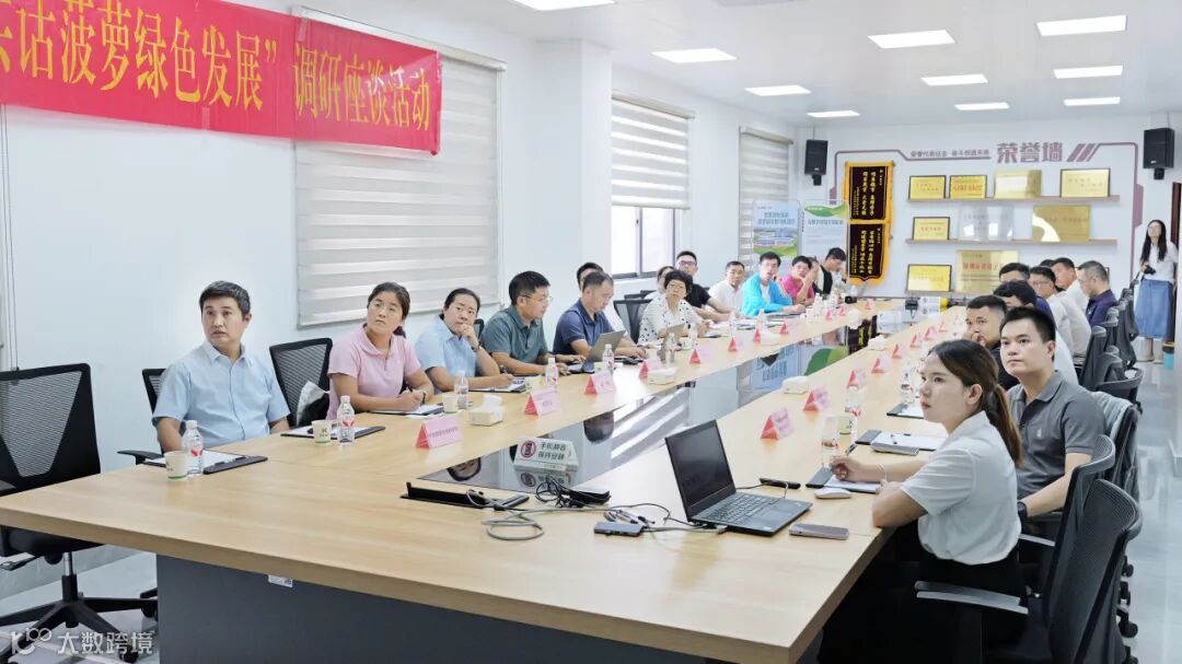 本次调研座谈汇集多方代表,包括湛江市生态环境局徐闻分局局长郑振韧、副局长曾超鹏,生态环境部华南环境科学研究所主任蔡彬,中国热带农业科学院南亚热带作物研究所副研究员马海洋、农业机械研究所副研究员葛畅,以及多家菠萝加工企业代表。