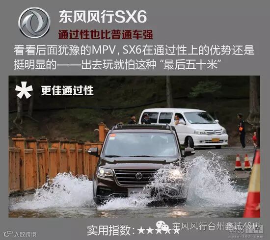 结语:就和开头说的一样,风行SX6不但价格实在,配置不低——这都是自主的“传统强项”,而在空间和通过性方面也具备了七座SUV的本职能力;另外驾乘感受也比此前类似车型得到提升,这算是“突破项目”——相信消费者自己心里也有杆秤,能做出自己的最佳选择。