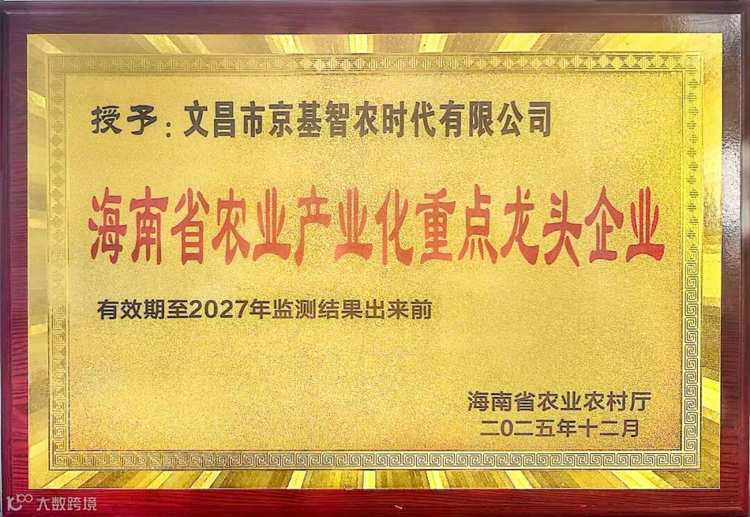 近日,京基智农旗下文昌市京基智农时代有限公司荣获“海南省农业产业化重点龙头企业”称号。这一认定,是对项目引领海南农业现代化、筑牢全产业链竞争力的认可,更是对其扎根地方、践行社会责任、助力海南乡村振兴的肯定。