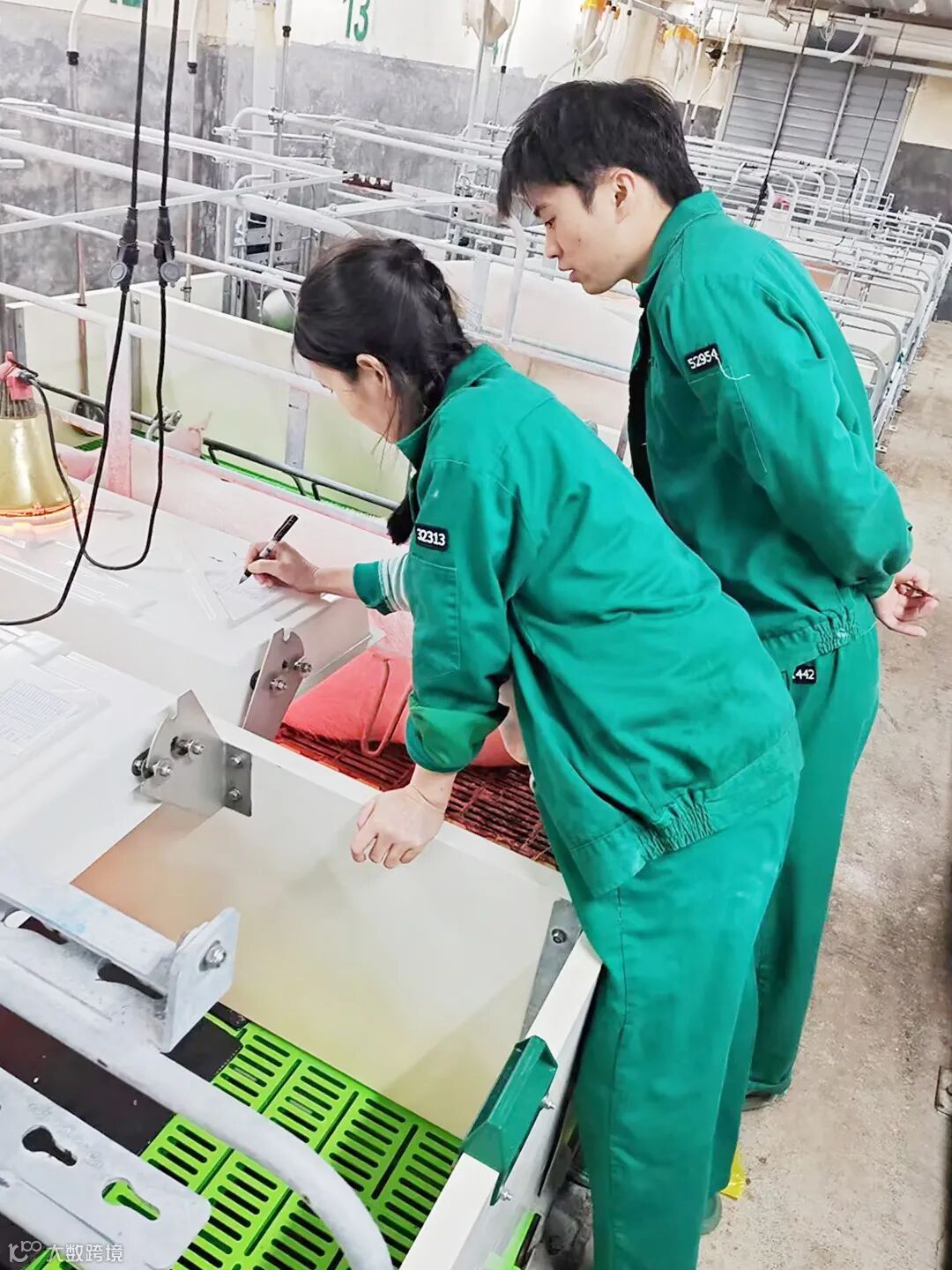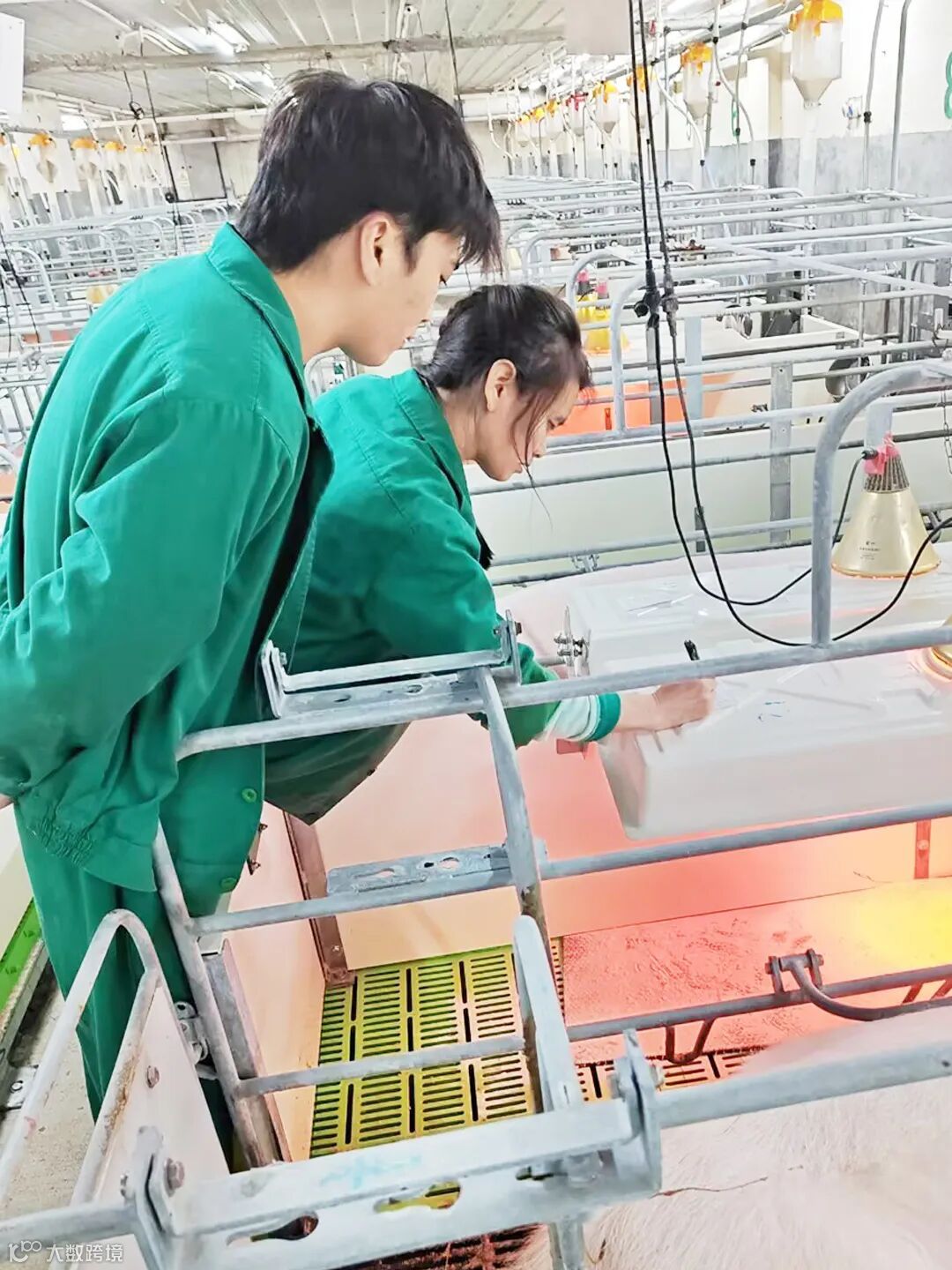 在生猪养殖中,后备猪的繁育是猪场生产成绩的关键。作为GP线的生产员,李曰淑深知自己岗位的重要性,并严格执行SOP流程。在母猪分娩前,她会彻底清理产床,用消毒水擦拭母猪阴户周围,防止感染,并在保温垫撒上干燥粉,调节保温灯档位,为仔猪创造一个健康、无菌、舒适的环境。