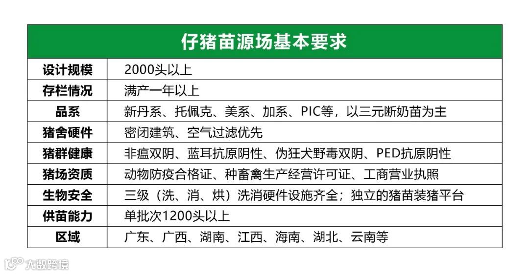具备合法经营资质,证件齐全;可长期稳定供应健康度高、品种优良的仔猪;养殖生产效率高,行业口碑良好;优先考虑具备生物安全防控体系和标准化管理的养殖企业。具体如下: