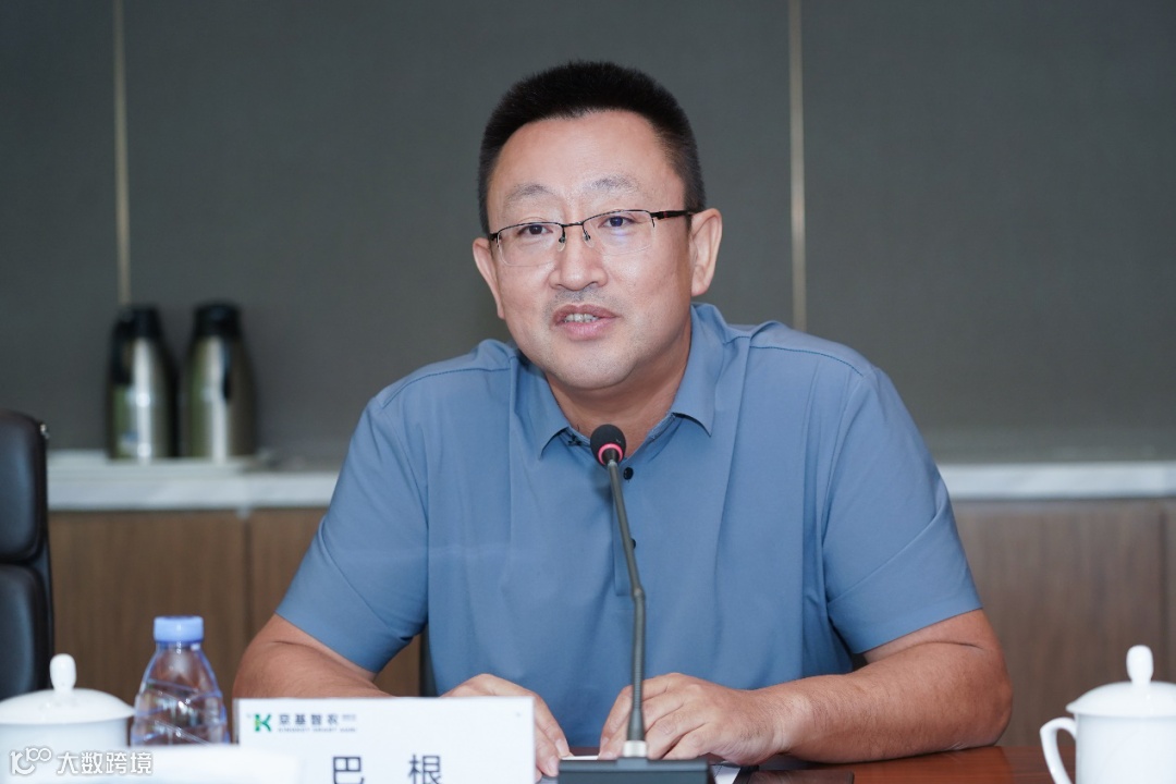 京基智农总裁巴根对李军晓一行的到来表达诚挚欢迎,他表示,云浮是连接广东珠三角和大西南的枢纽,拥有得天独厚的区位优势和交通条件,资源禀赋优越,营商环境优质,未来发展潜力巨大,特别是干部勇担当、善作为,充满干事创业激情,一直是京基智农想进驻投资、生根发展的沃土和热土,京基智农非常希望与云浮开展合作,加快推进项目在云浮落地、投产、见效。