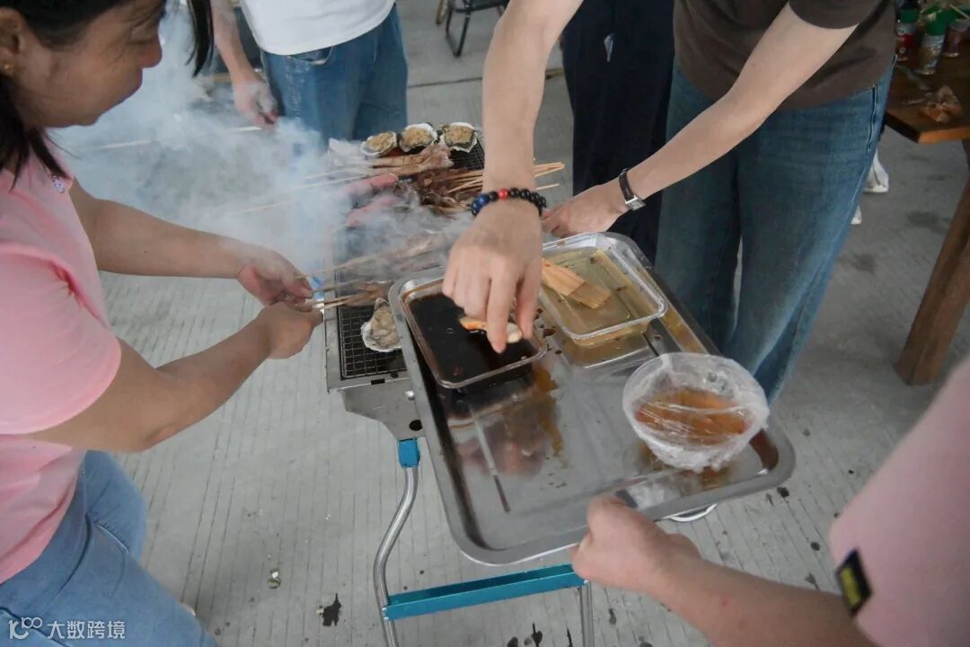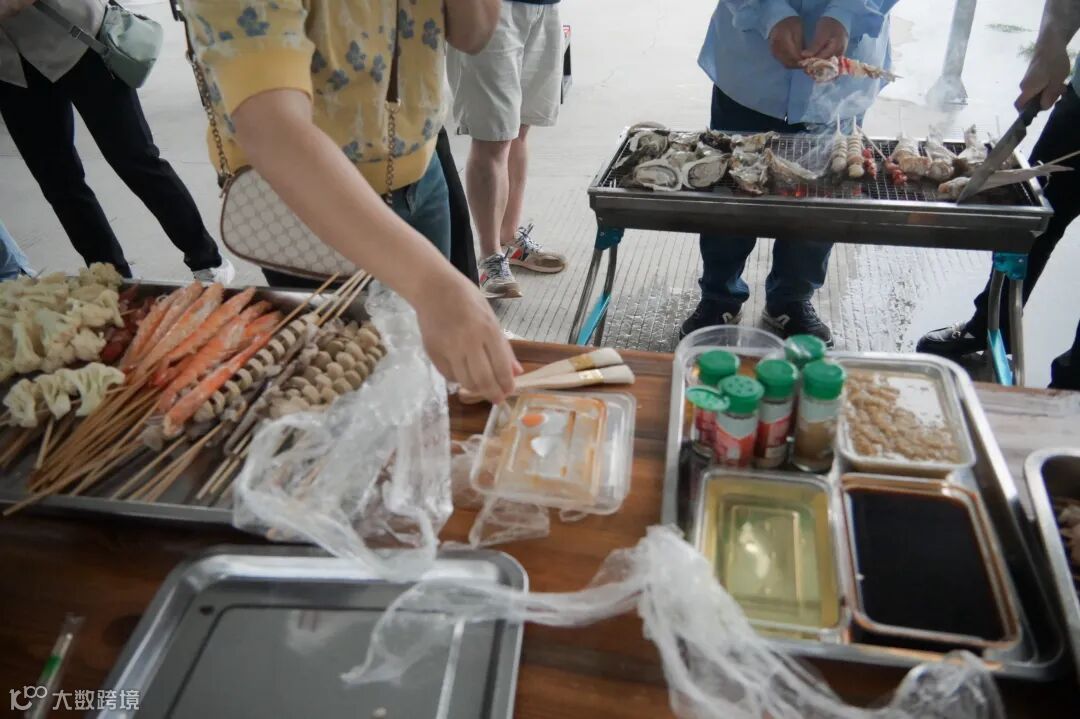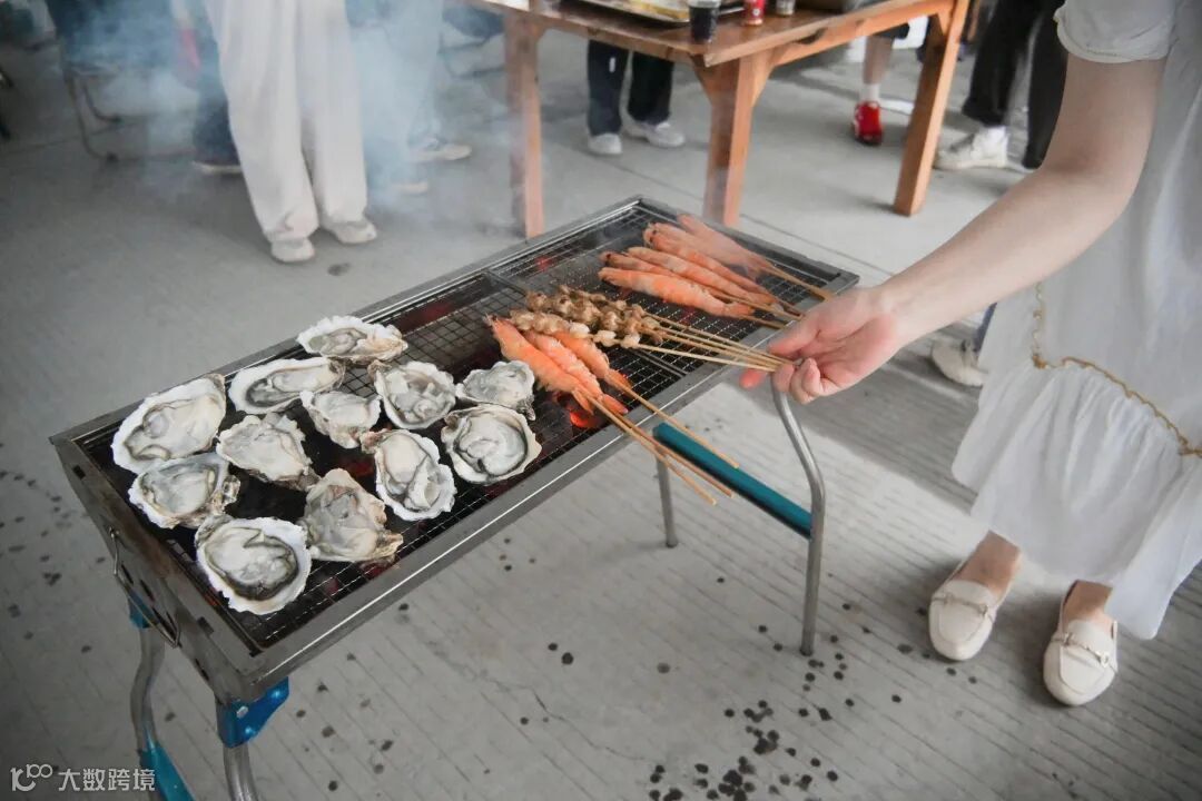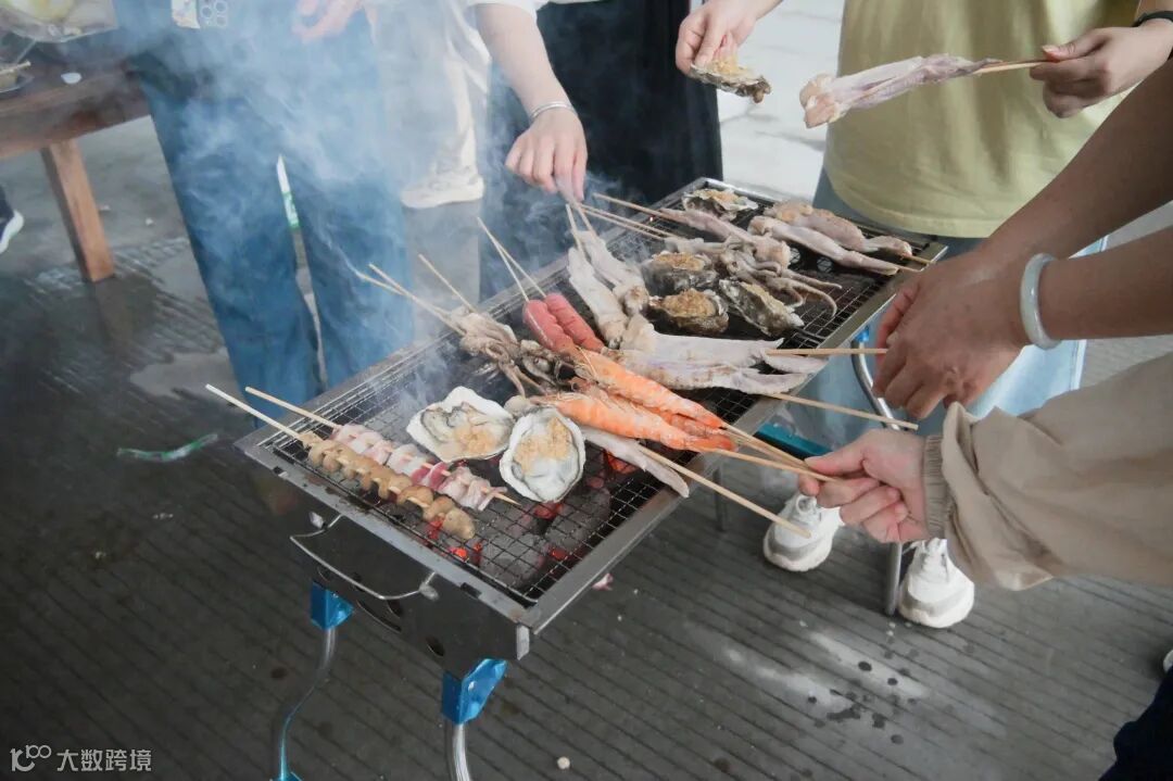 大家分工明确,有人熟练地生火,让烤架迅速升温;有人精心地串串,将各类食材巧妙搭配;还有人专注地烤制,刷油、撒料,动作娴熟。