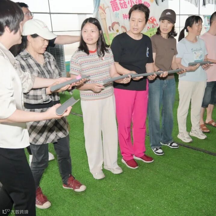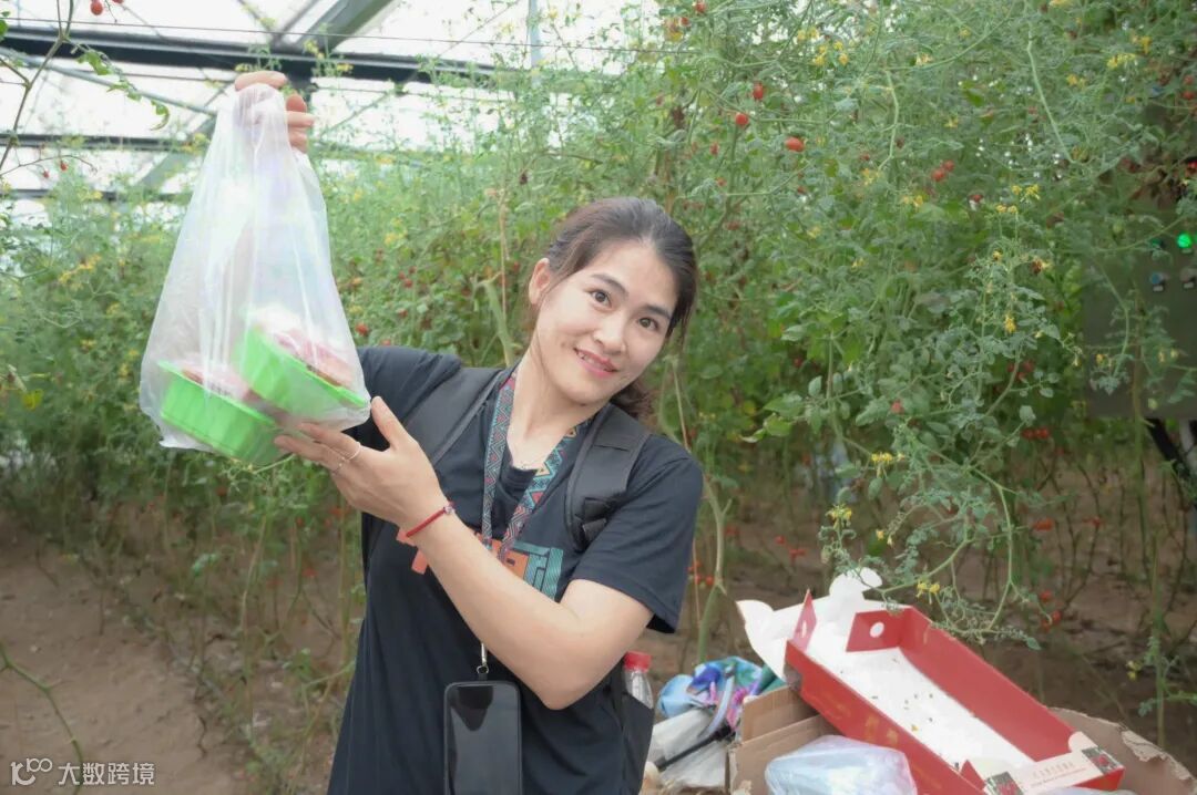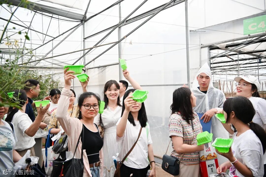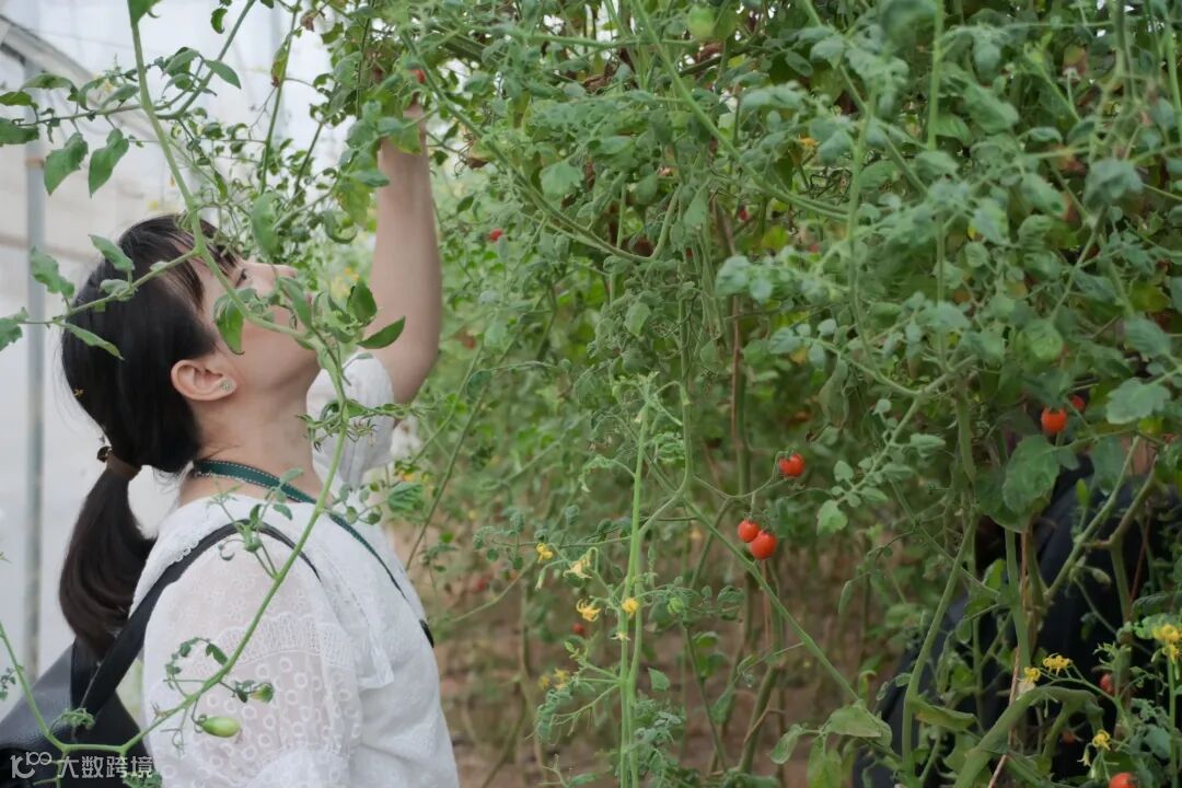 拓展活动结束后,大家来到蔬果采摘大棚。大棚内温暖湿润,蔬果的芬芳弥漫在空气中。