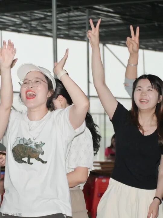 接下来的解锁360活动更是趣味横生。起初,大家手牵手,形成一道道“人洞”,成员们依次从下方钻过,现场满是此起彼伏的笑声与呼喊声。