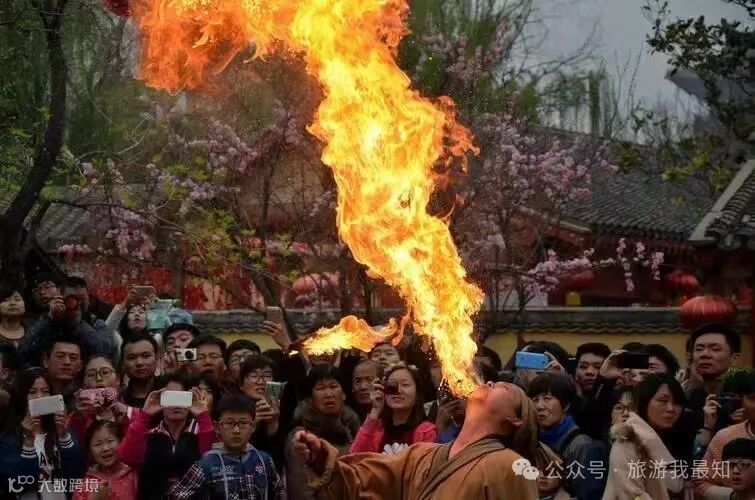 上刀山、下火海、喷火表演等