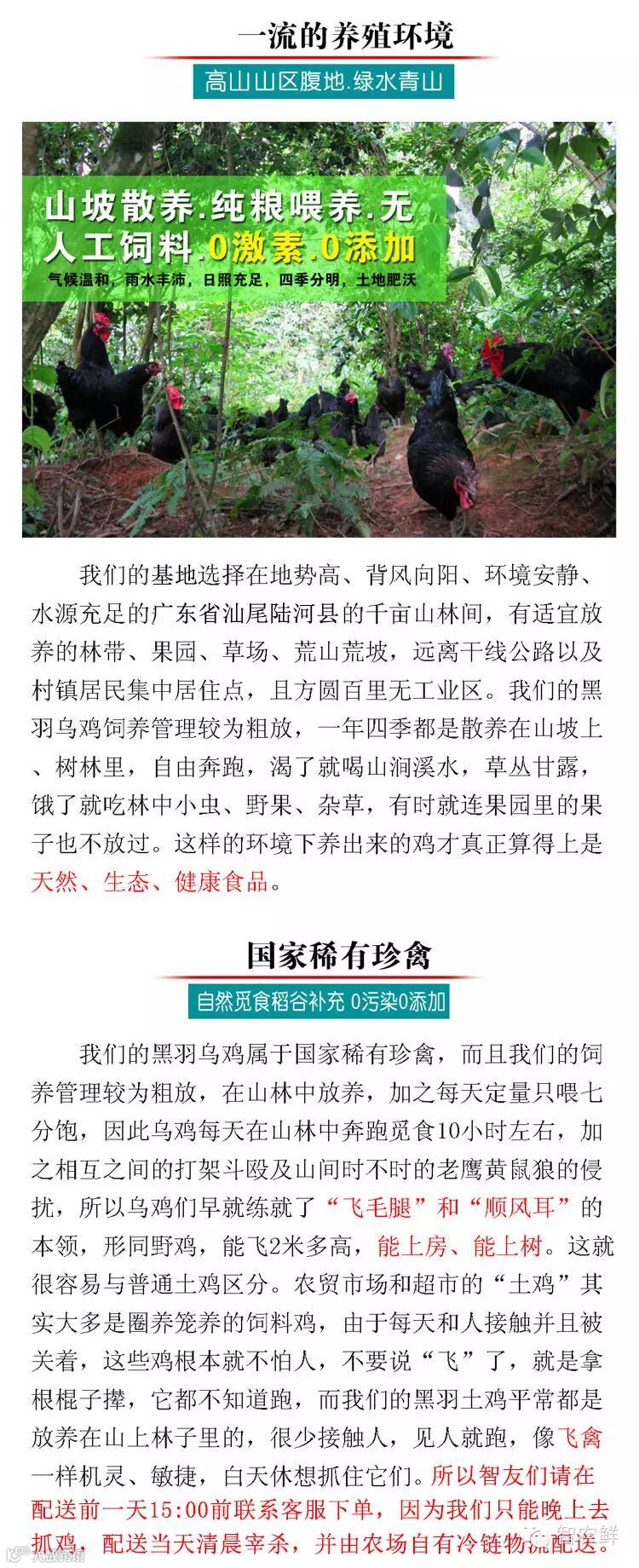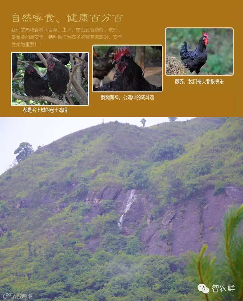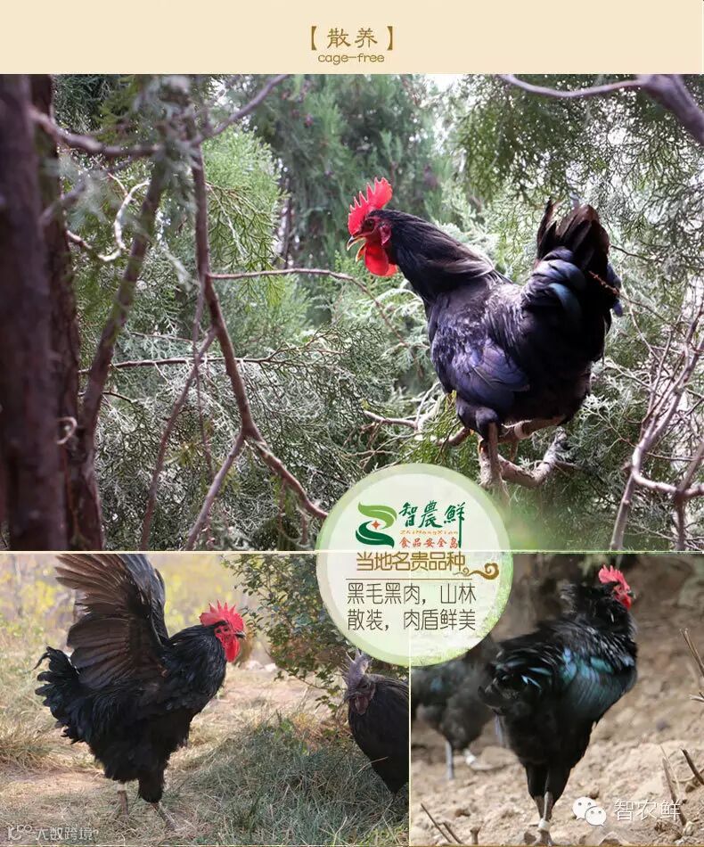 成片的树林和具有一定坡度的山坡是山林放养土鸡的活动场所。农场为山林地,具有一定坡度,使得农场不易积水,树林更具有吸水的效果,还能防晒,防雨,更加提高了鸡的品质。喂养主要以玉米、豆渣、麸皮、蚕蛹按照一定比例混搭,再以昆虫、菜叶、青草为辅进行喂养。