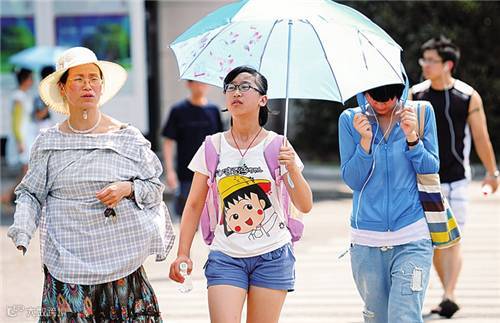 出门记得要备好防晒用具,最好不要在上午10点至下午4点时在烈日下行走。如果此时必须外出,一定要戴遮阳帽、戴太阳镜、涂抹防晒霜,带上充足的水。此外,防暑降温药品,如十滴水、仁丹、藿香正气水等一定要备在身边。外出时的衣服尽量选用棉、麻、丝类的织物,少穿化纤类的衣服,以免大量出汗时不能及时散热。