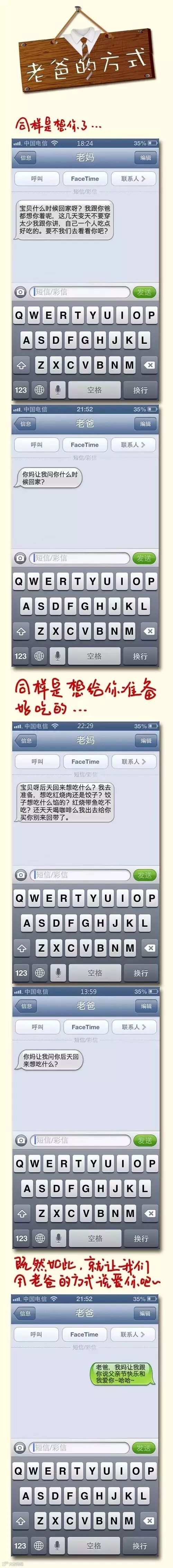 从小,老爸都不爱表达,一句话可以看出老爸和老妈的区别: