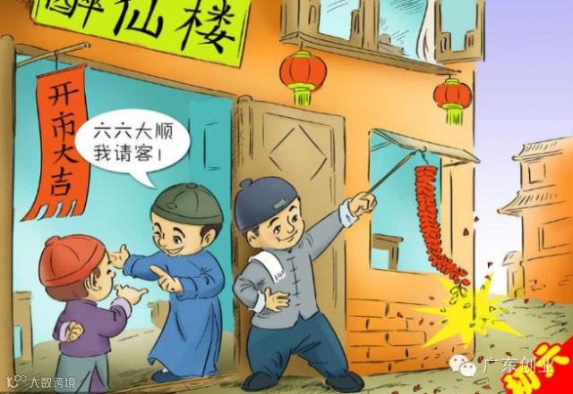 年初六,商店酒楼才正式开张营业,而且要大放鞭炮,不亚于除夕的境况。传说这一天最受欢迎的是当年满12岁的男孩,因为12是6的二倍,这叫六六大顺。这一天,每家每户要把节日积存的垃圾扔出去,这叫送穷鬼。