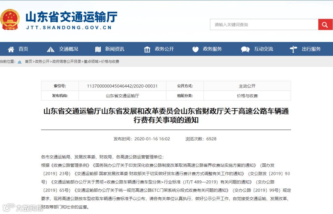 山东省交通运输厅官网公布
