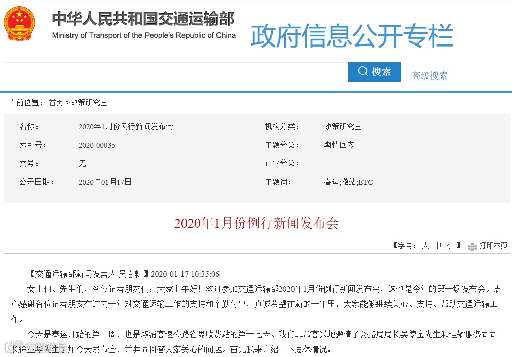 交通运输部1月17日举行新闻发布会,